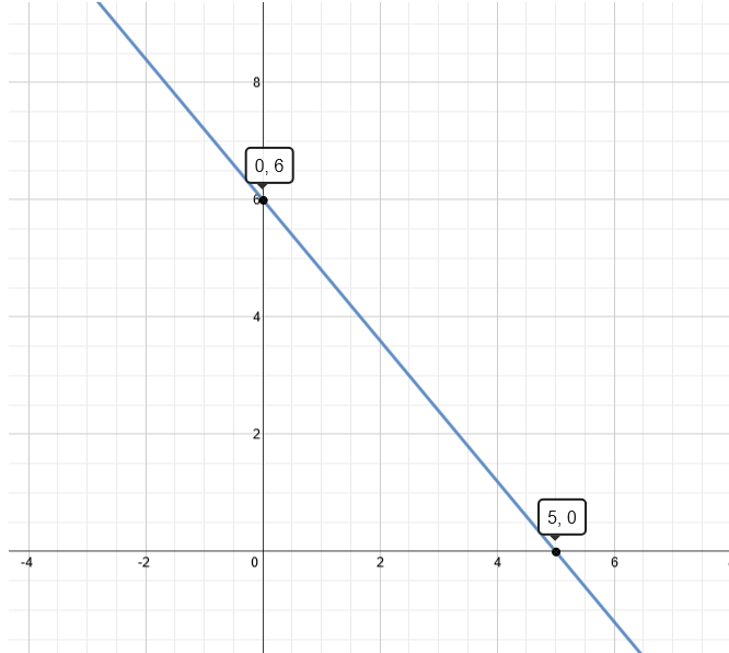 On the given graph you can also find all of the important points for function 6x+5y=30 (if they exist).